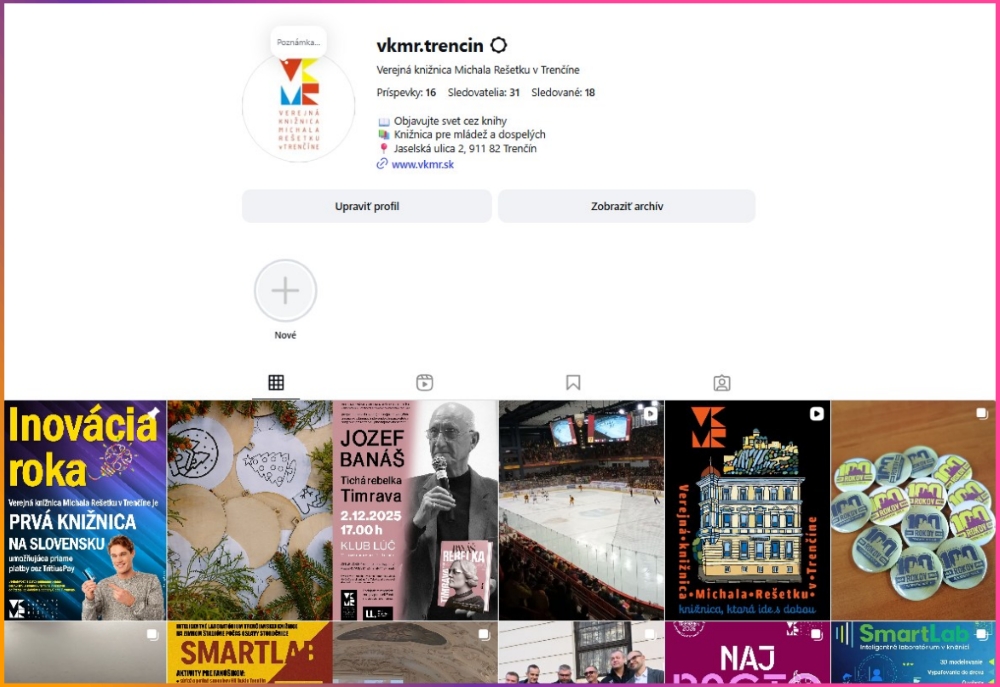 Verejnú knižnicu Michala Rešetku nájdete popri Facebooku už aj na obľúbenom Instagrame pod názvom vkmr.trencin.