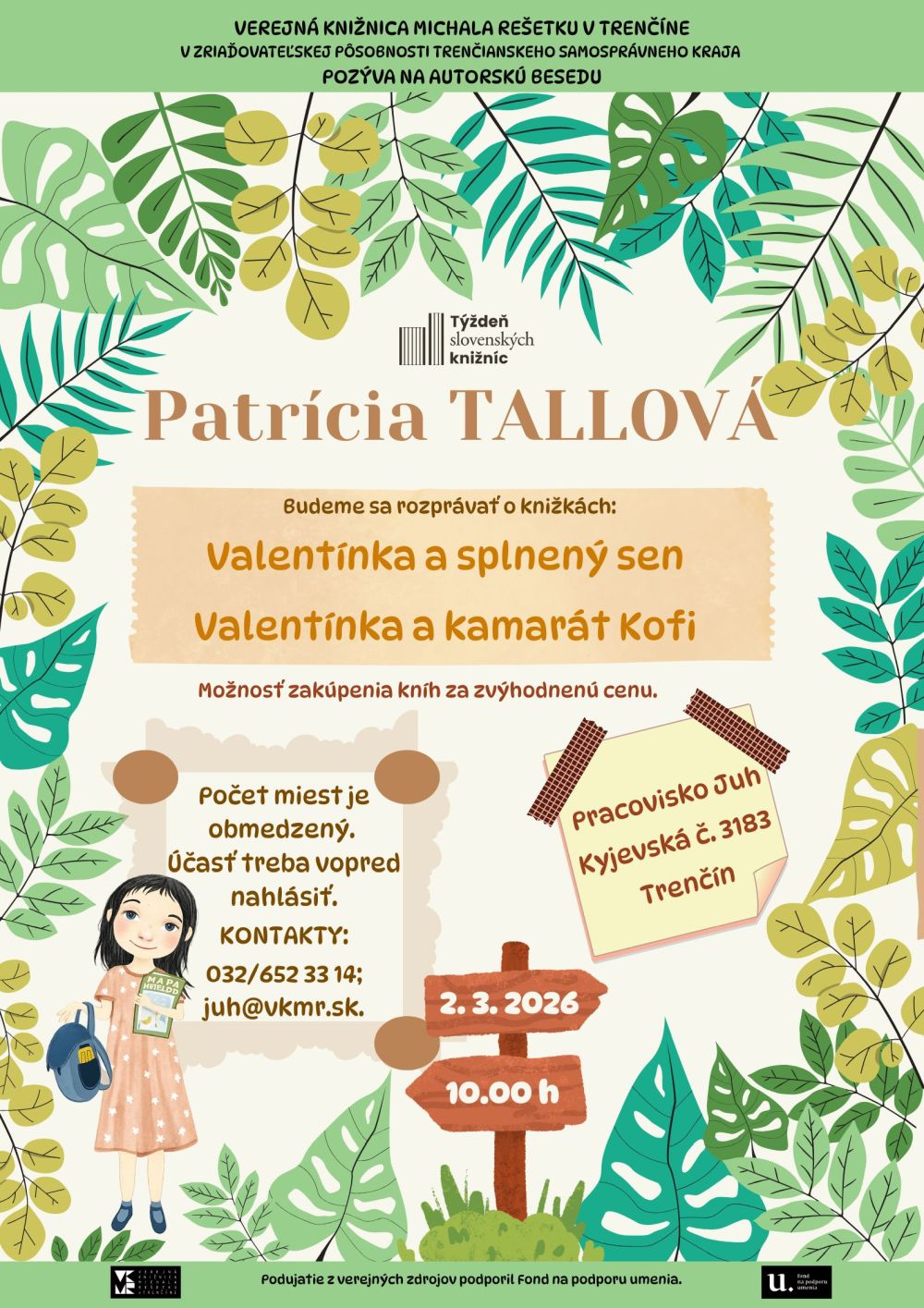 Beseda s regionálnou spisovateľkou pre deti, autorkou kníh Valentínka a splnený sen a Valentínka a kamarát Kofi, PATRÍCIOU TALLOVOU.