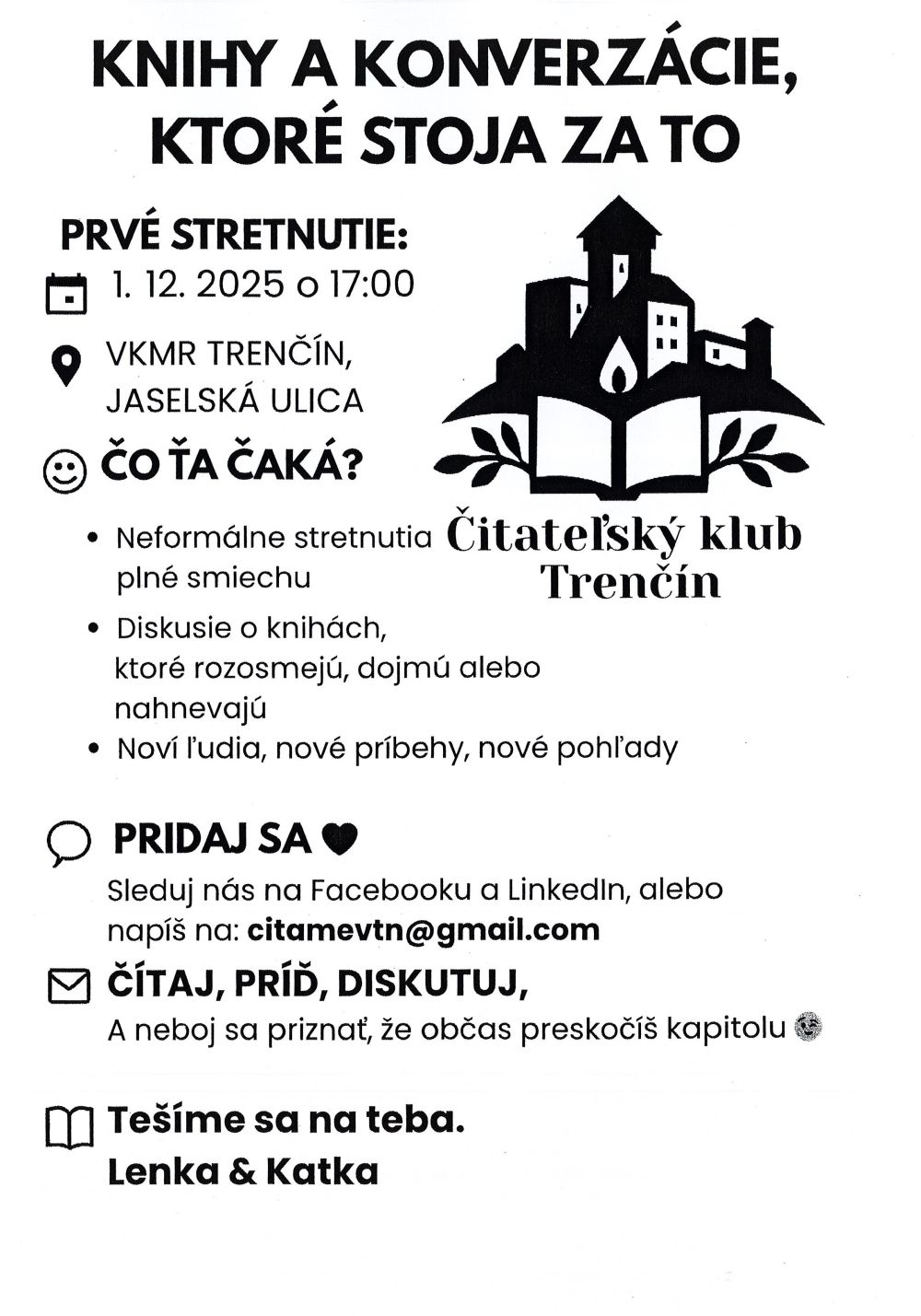 Bližšie informácie: Facebook, LinkedIn a e-mail citamevtn@gmail.com.