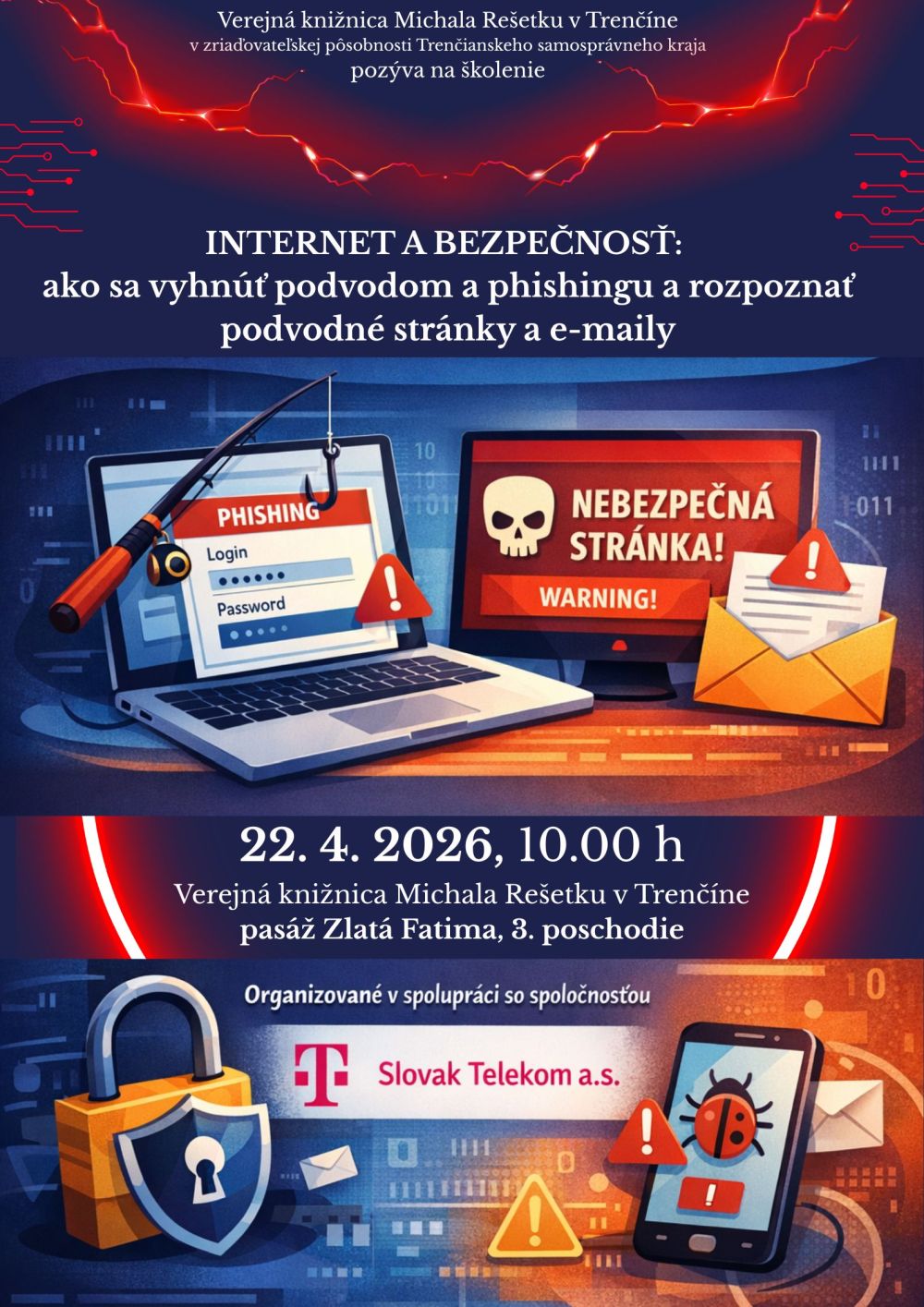 Chcem sa registrovaťInteraktívna prednáška zameraná na internetovú bezpečnosť: Ako sa vyhnúť podvodom a phishingu a rozpoznať podvodné stránka a e-maily.