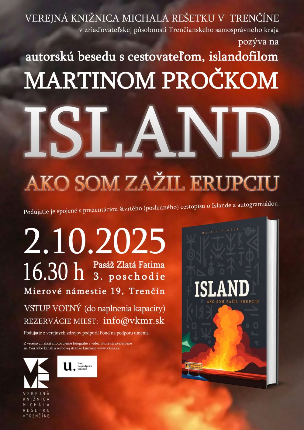 Registrácia - UkončenáBeseda so spisovateľom, cestovateľom, islandofilom MARTINOM PROČKOM spojená s prezentáciou jeho štvrtého, záverečného cestopisu zo série o krajine ľadu i ohňa.