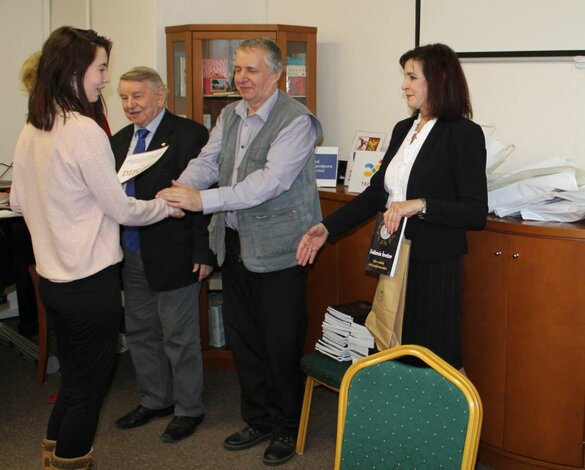 Slávnostné vyhlásenie výsledkov XXVI. ročníka celoslovenskej literárnej súťaže Jozefa Braneckého. Prítomní členovia odbornej poroty: Margita Ivaničková, Janka Poláková, Jaroslav Rezník, Štefan Cifra. Dátum: 30. 11. 2018.